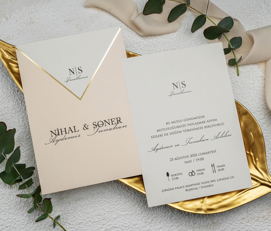 - Düğün Davetiyeleri: Çiftin adını, düğün tarihini ve mekanını belirtir. Ayrıca zarif ve romantik bir tasarıma sahiptirler.